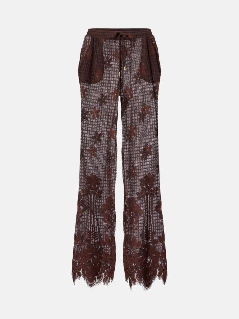Etta cotton-blend lace wide-leg pants