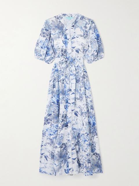 Kitty belted printed cotton and linen-blend midi dress Blue