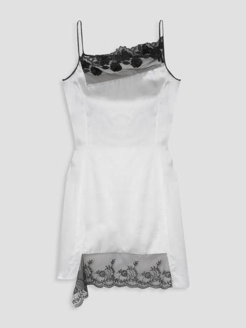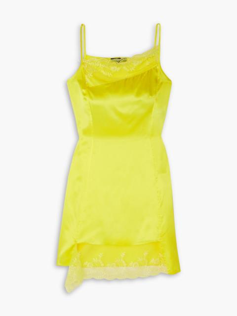 Asymmetric lace-trimmed silk-charmeuse mini dress