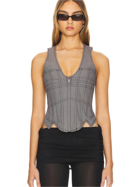 Founded in 2016 by Alexia Elkaim, Miaou began with a single pair of Parisian-inspired denim, designed to solve the universal struggle of finding the perfect fit. Raised between Paris and Los Angeles, Elkaim infused the brand with retro-romantic charm, drawing from vintage finds and mid-century French and 90s supermodel aesthetics. Initially celebrated for its body-hugging jeans, Miaou has since evolved into a full womenswear label, offering tailored trousers, bustier blouses, mini dresses, and fitted blazers. With a focus on empowering the “femme” gaze, the brand also features a sportswear line inspired by the playful logomania of 80s and 90s athletics.