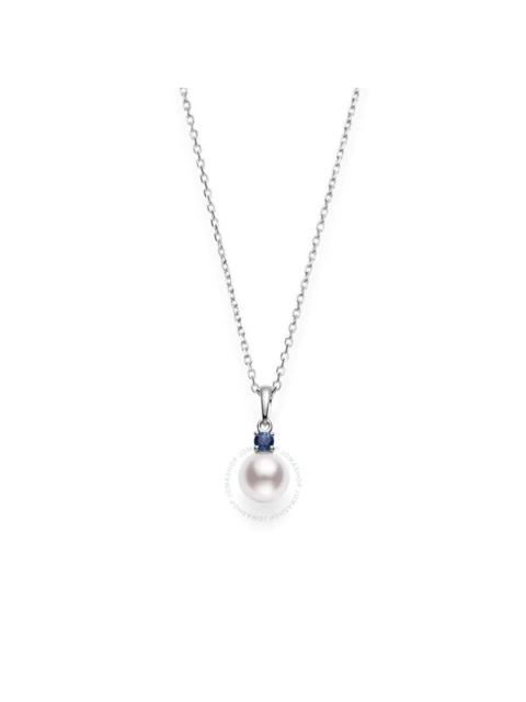 Mikimoto Akoya Cultured Single Pearl Pendant with Sapphire in 18K White Gold - PPS802SAW