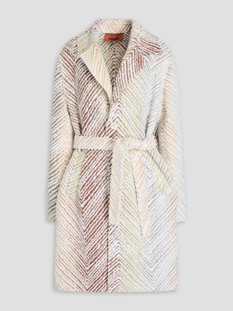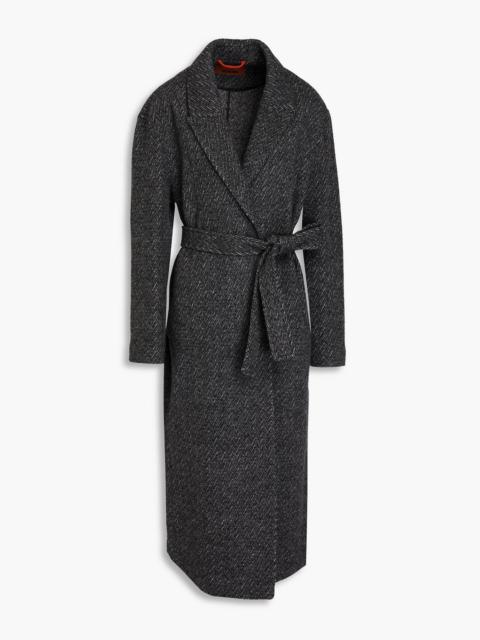 Belted bouclé-tweed coat