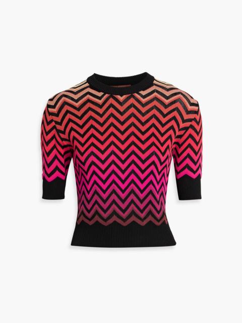 Striped crochet-knit cotton-blend sweater