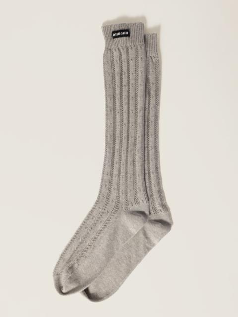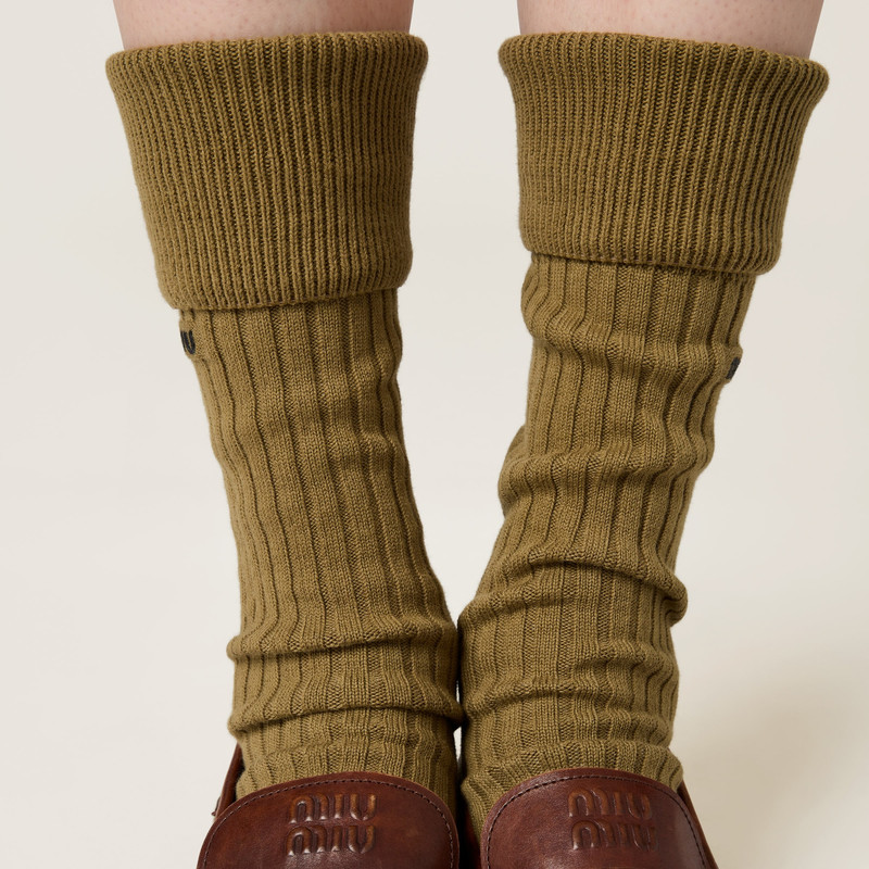 Elevate your wardrobe with Miu Miu accessories, focusing on their exquisite range of women's socks & tights. Miu Miu seamlessly blends playful motifs with high-quality craftsmanship, ensuring each pair of socks & tights provides both comfort and style. Discover our curated selection of Miu Miu's statement hosiery, featuring unique patterns and luxurious materials that set you apart.