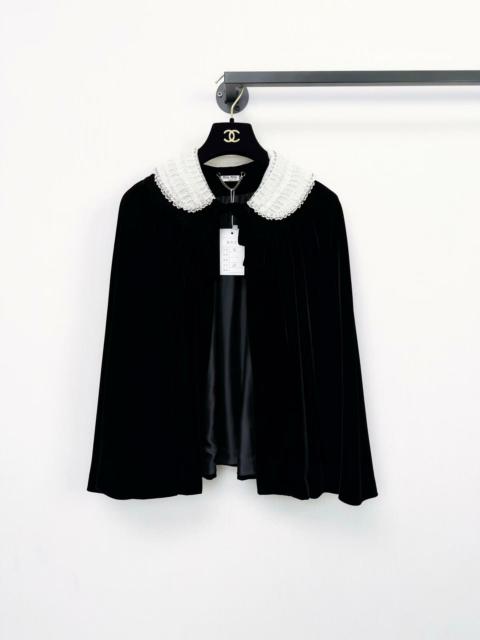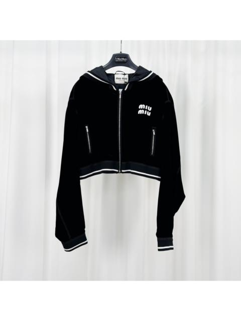 - Miu MiuMiu Miu Black Velvet Embroidered Letter Zip-Up Jacket