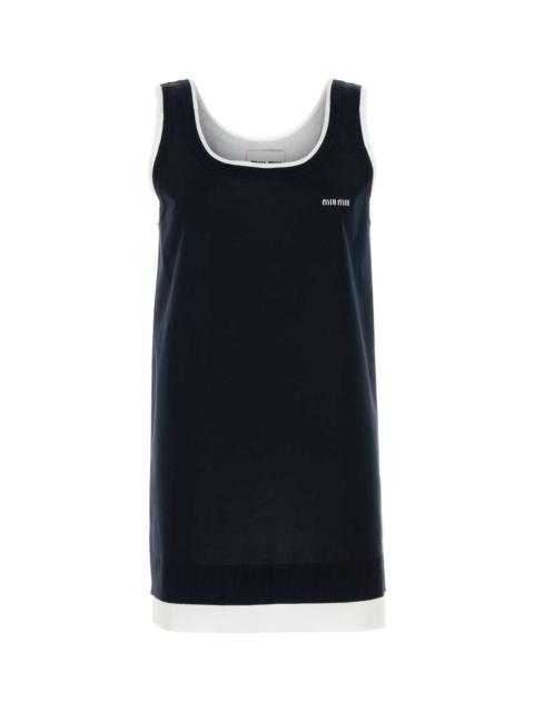 Miu Miu Women Dark Blue Stretch Silk Blend Dress