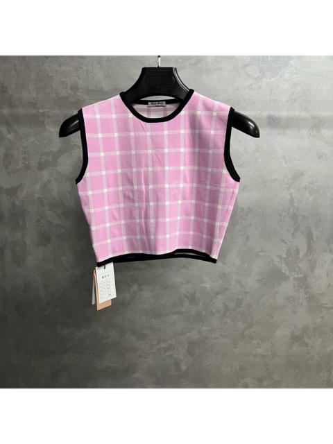 - Miu MiuMiu Miu pink plaid crew neck sleeveless vest