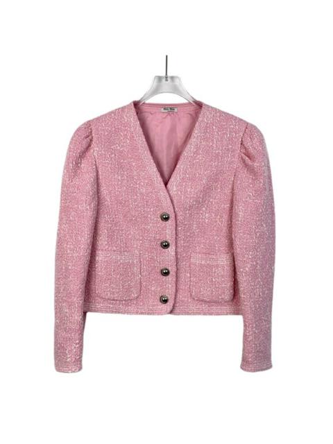 Miu Miu Pink V-Neck Single-Breasted Tweed Jacket