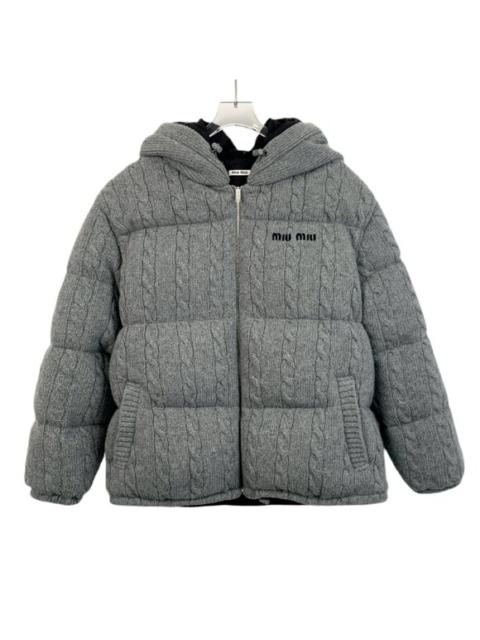 - Miu MiuMiuMiu Gray Embossed Logo Hooded Zip-Up Down Jacket