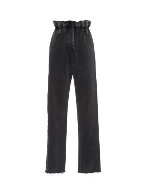 Miu Miu jeans challenge everything you thought you knew about denim. These aren't your typical blue jeans—they're architectural statements that reimagine proportions, embrace unconventional cuts and transform the most basic wardrobe staple into something unexpected.