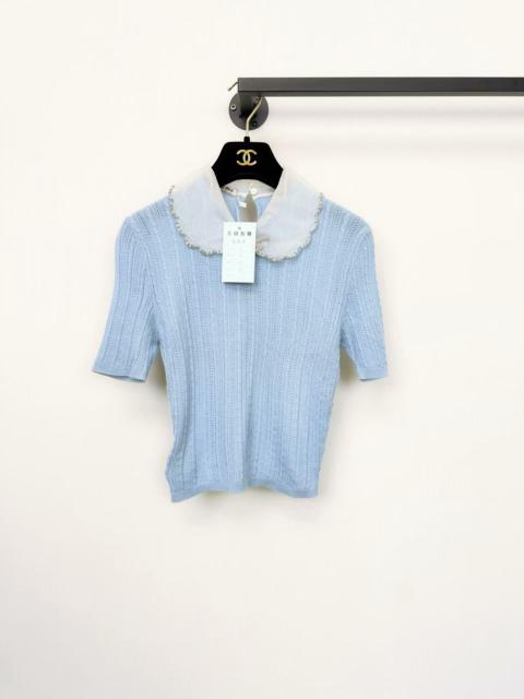 Miu Miu 24 yellow striped single-breasted round neck short-sleeved sweater