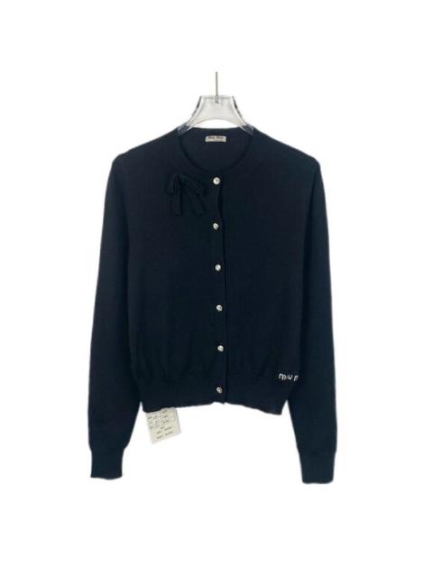 Miu Miu Black Logo Embroidered Sheepskin Wool Long-Sleeve Knit Cardigan