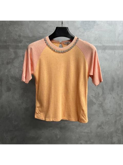Miu Miu orange and pink diamond-studded short-sleeved shirt