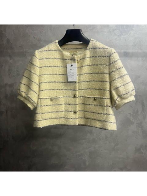 Miu Miu 24 yellow striped single-breasted round neck short-sleeved sweater