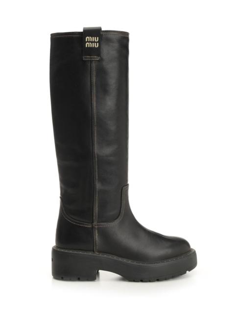 Miu Miu Womens Black Leather Thigh-High Boots With Crystal Heels Size 36