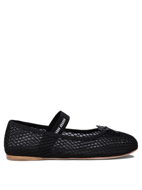 Miu Miu Women Mesh Ballerinas With Contrasting Leather Buckle