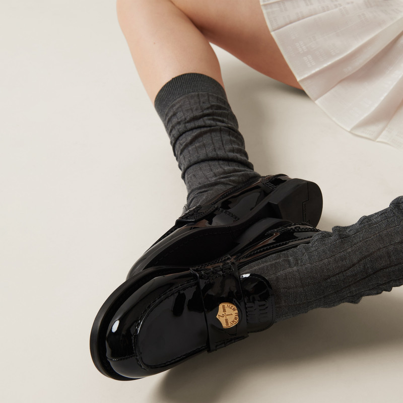 Miu Miu flats turn the understated into the unforgettable. This collection captures everything that makes Miu Miu special, showcasing the way classic shoes become conversation pieces through thoughtful details and feminine touches that feel fresh, not fussy.