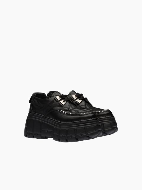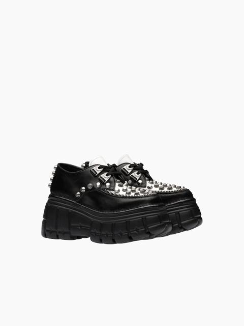 Miu Miu flats turn the understated into the unforgettable. This collection captures everything that makes Miu Miu special, showcasing the way classic shoes become conversation pieces through thoughtful details and feminine touches that feel fresh, not fussy.