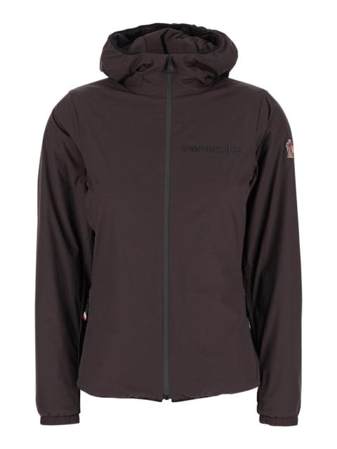 Moncler Grenoble Women Brown Hooded Jacket With Logo Print In Tech Fabric Woman