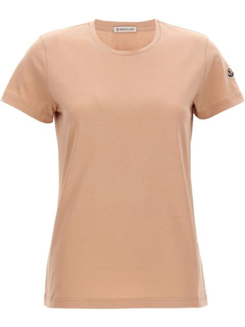 Moncler Women Pink T-Shirt With Embroidered Logo On The Front And Logo Patch On The Sleeve In Cotton