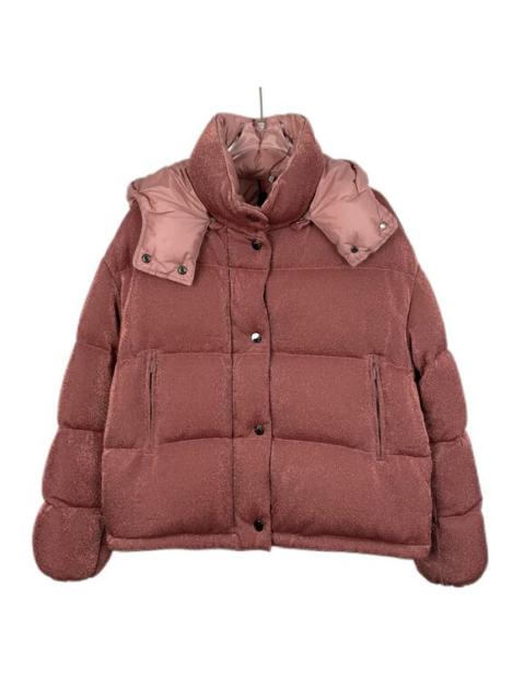 Moncler Caille Series Dusky Pink Glitter Logo Patch Hooded Quilted Down Jacket