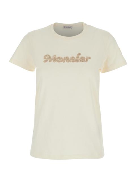 Moncler Women White T-Shirt With Embroidered Logo On The Front And Logo Patch On The Sleeve In Cotto