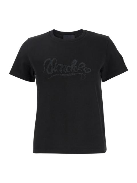 Moncler Women Black T-Shirt With Logo Embroidered On The Front In Cotton Woman