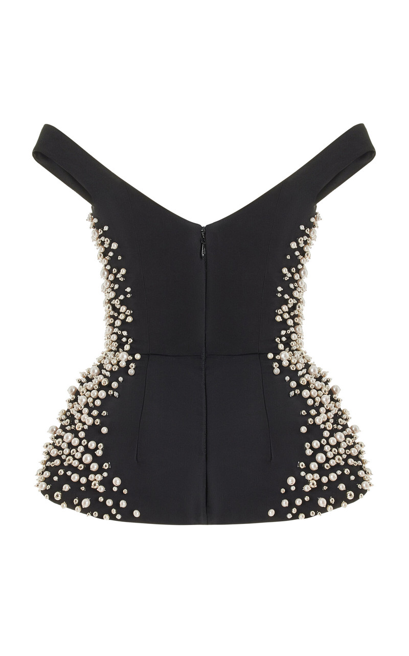 - Monique LhuillierPearl-Embellished Silk Peplum Top black