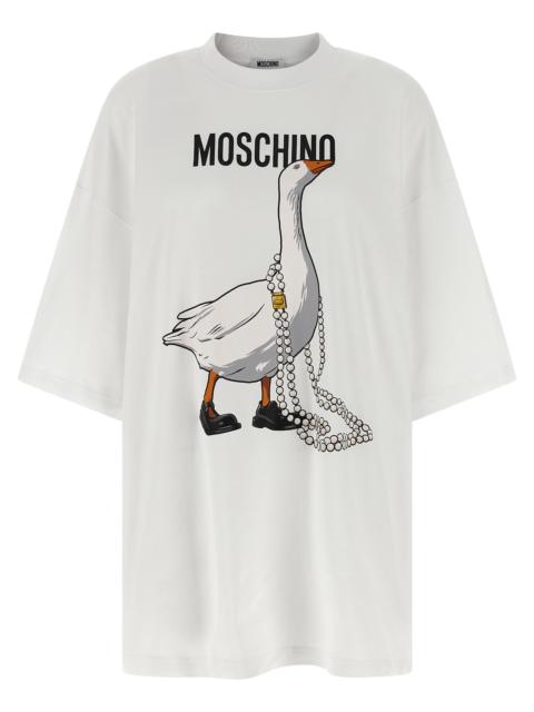 Moschino Ladies White Cotton Crystal Logo Shirt Dress