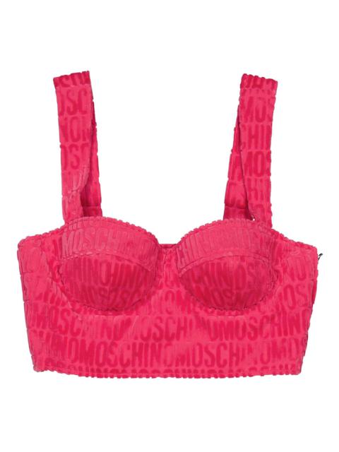Moschino Fantasy Print Fucsia All-Over Logo Crop Top