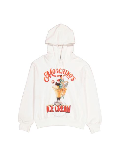 Moschino White Ice Logo Print Cotton Hoodie