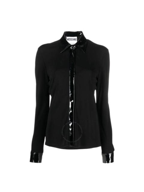 Moschino Black Vinyl Detail Long-Sleeve Organzine Shirt