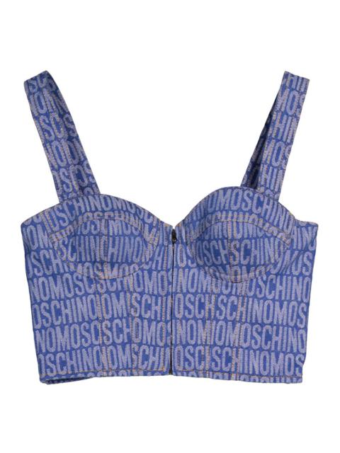 Moschino Ladies Fantasy Print Blue Monogram Denim Cropped Top