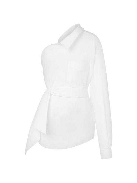 Moschino Ladies Light Blue Bow Detail Long-Sleeved Blouse