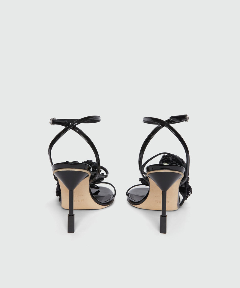 Black patent leather sandals with raffia detail and iconic MSGM heel