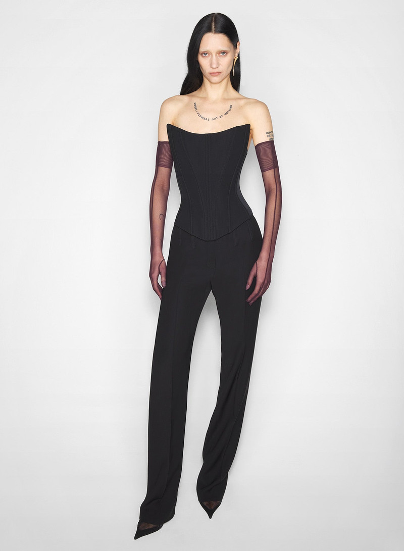 black tailored bustier top