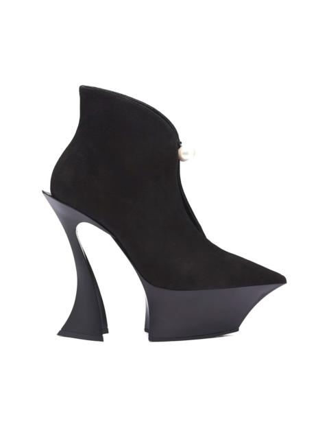 - MUGLERblack crocodile embossed leather buckled fang 95 mules