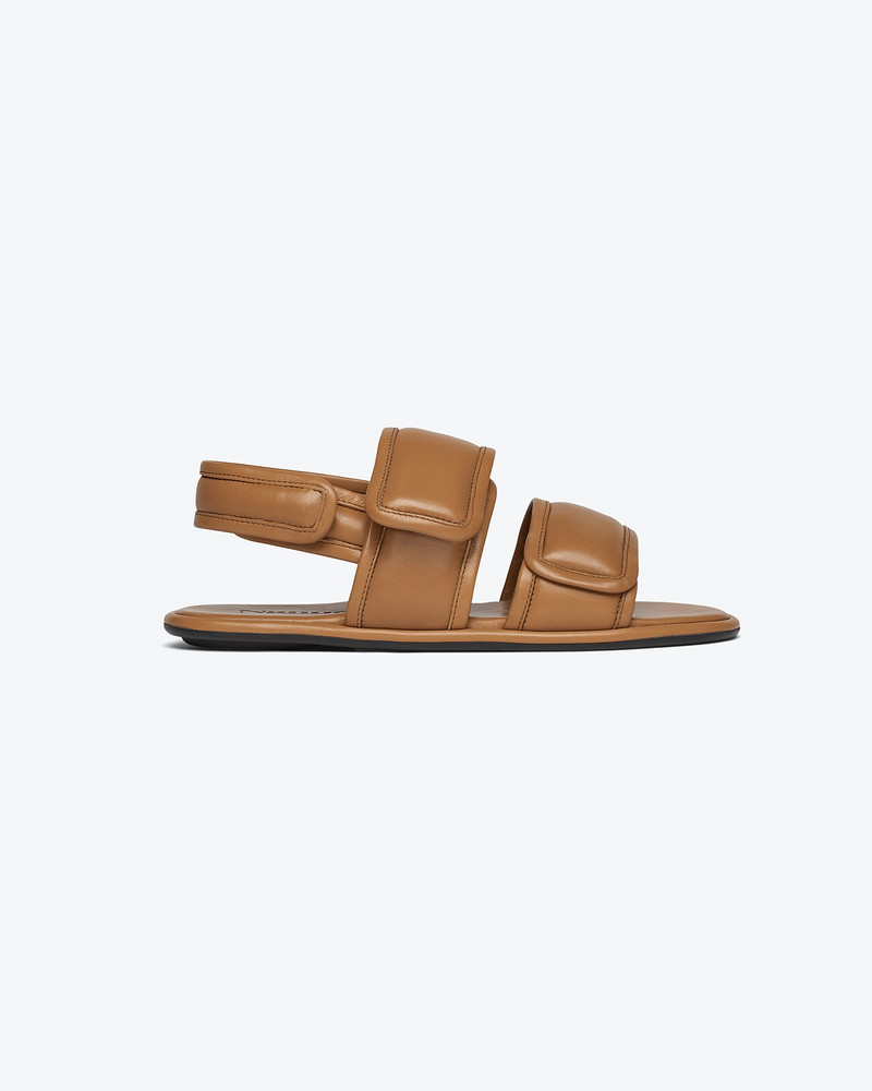 TARRUS - Rounded toe padded flat sandals with velcro straps - Nut brown