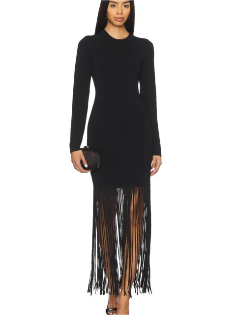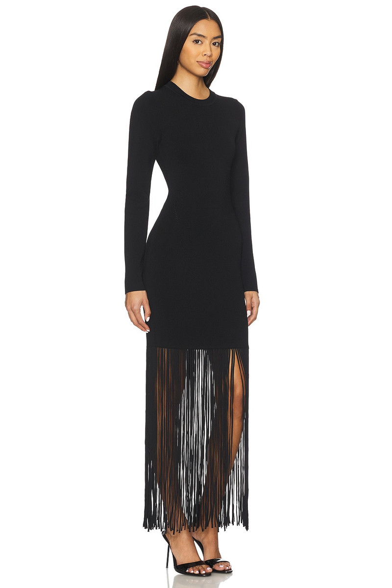 Clementine Fringe-Hem Rib Knit Maxi Dress