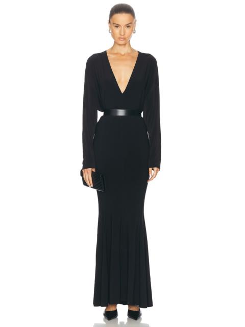 Long Sleeve V Neck Shirred Front Fishtail Gown