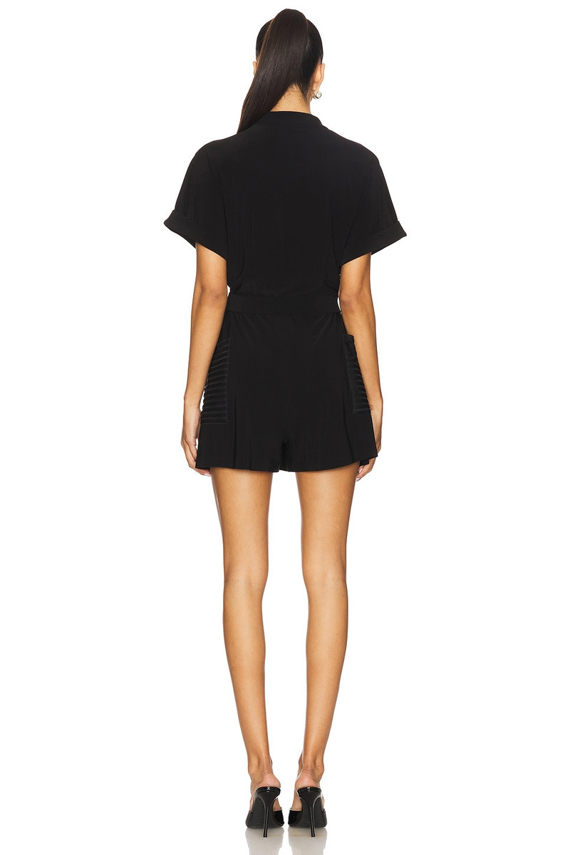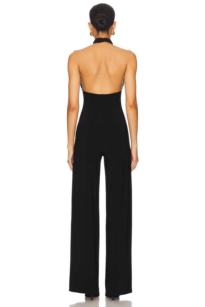 Long Sleeve Shoulder Pad V Neck Zip Front Tapered Leg Jumpsuit