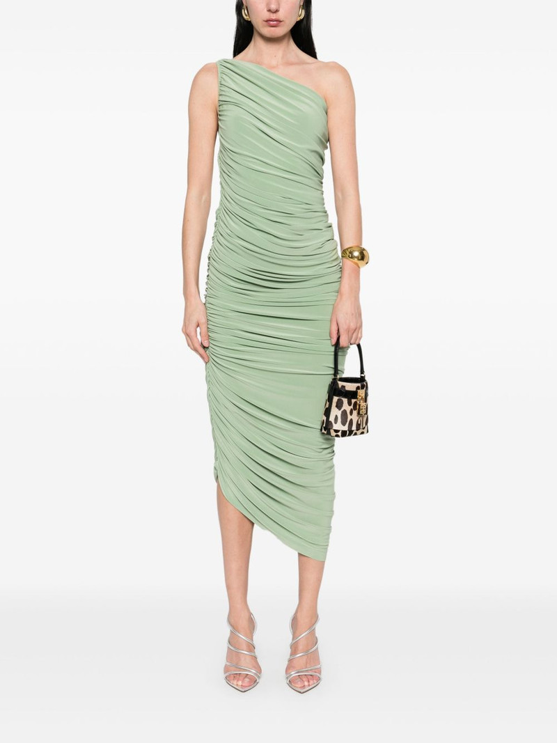 Long Sleeve Shoulder Pad V Neck Side Drape Gown