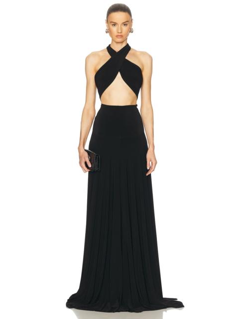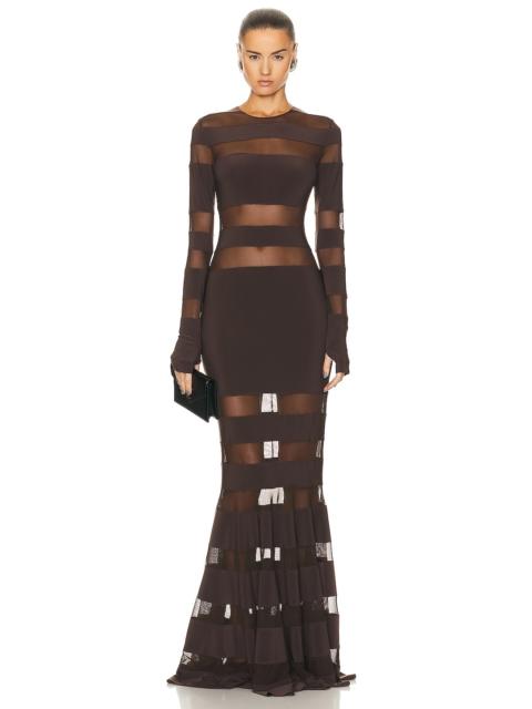 Long Sleeve V Neck Shirred Front Fishtail Gown