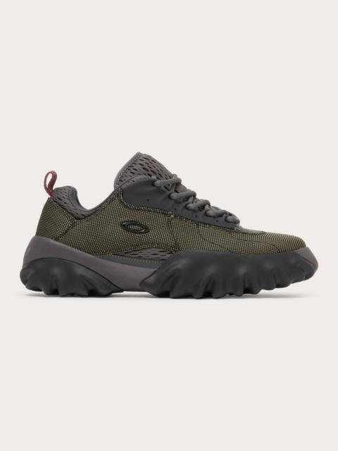 Oakley Factory Team is a collaboration between sportswear innovator Oakley and Los Angeles-based creative collective Brain Dead. Launched in 2022, the partnership reimagines Oakley’s iconic designs through an experimental, avant-garde lens. Reviving silhouettes like the Flesh and Chop Saw, the collection blends natural and advanced materials to craft retro-futuristic sneakers and sandals that balance functionality and bold aesthetics. Merging Oakley’s trailblazing sportswear legacy with Brain Dead’s artistic risk-taking, Oakley Factory Team stands at the crossroads of design, art, and technical innovation, redefining the boundaries of contemporary footwear.