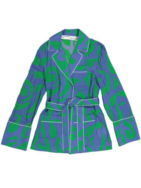 Off-White Leaf-Print Pyjama-Style Shirt in Blue/Green