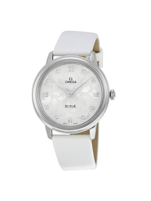 Omega De Ville White Diamond Dial White Satin Ladies Watch 42412336052001