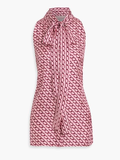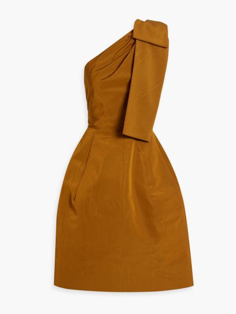 Strapless bow-embellished silk-taffeta and stretch-knit dress