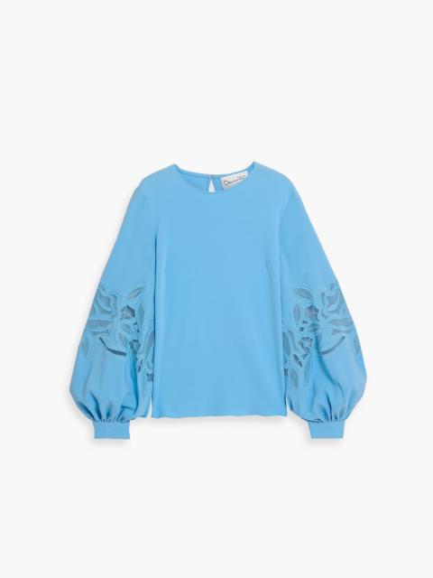 Fringed crepe de chine-paneled cotton-blend cardigan