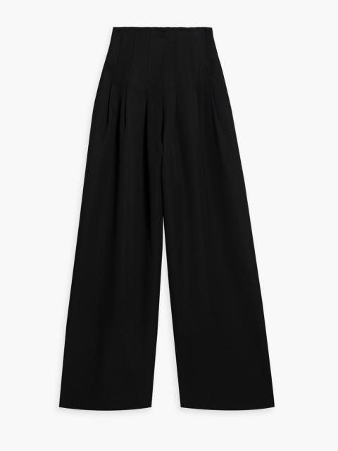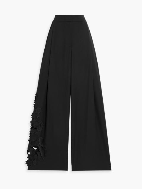 Guipure lace-paneled grain de poudre wool wide-leg pants