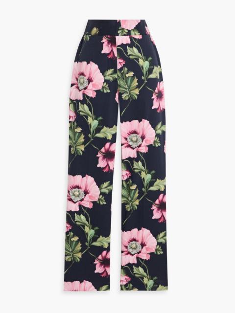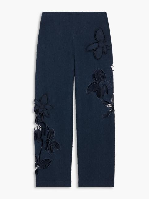 Floral-appliquéd cotton-blend tweed straight-leg pants